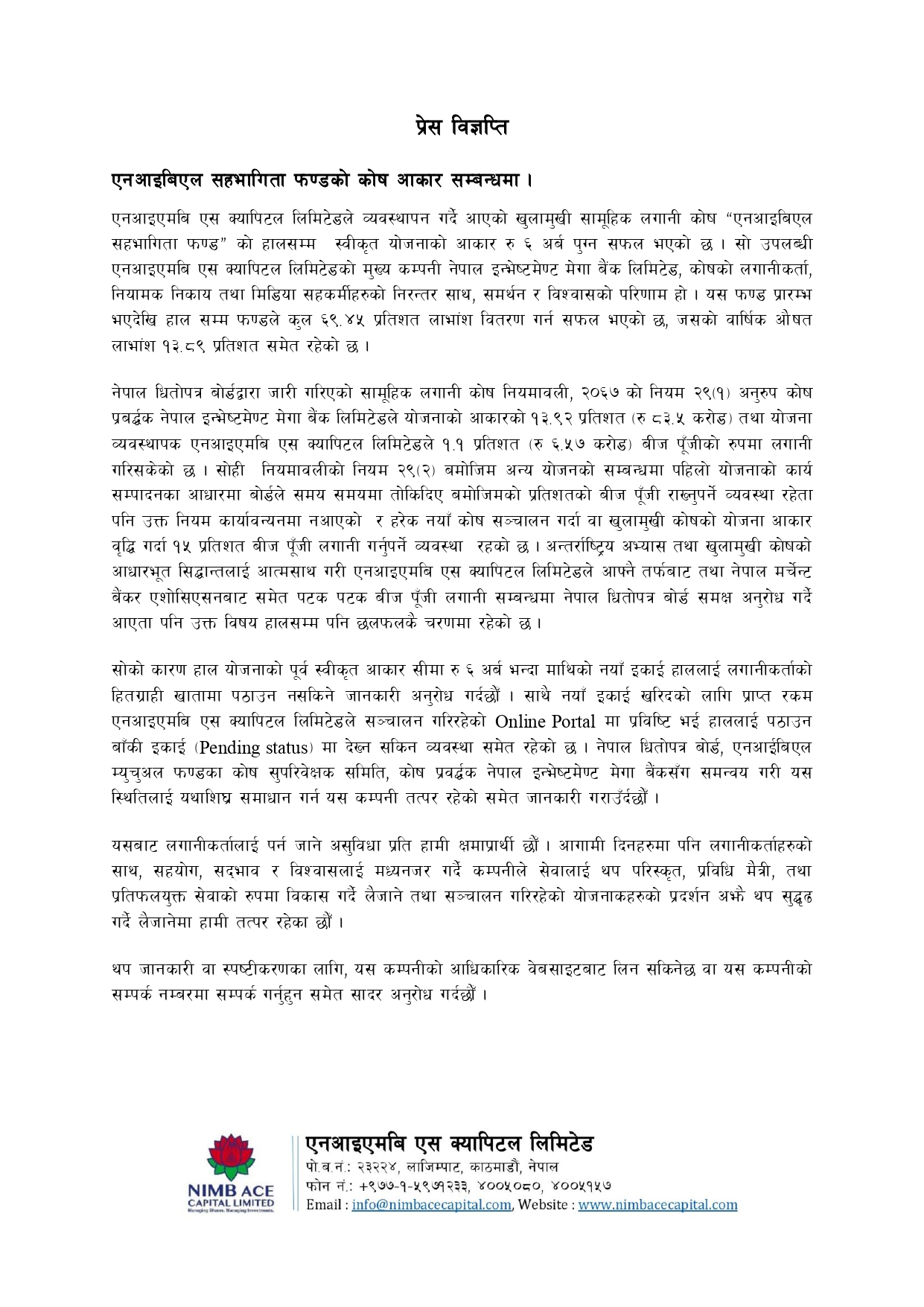 NIMB Mutual fund provides you the right blend of security and returns.